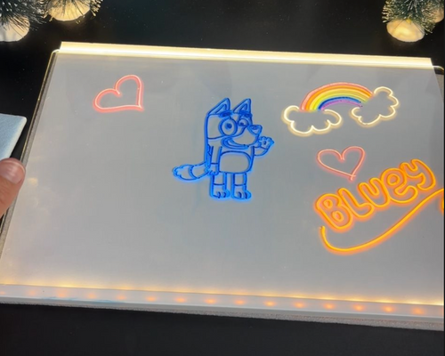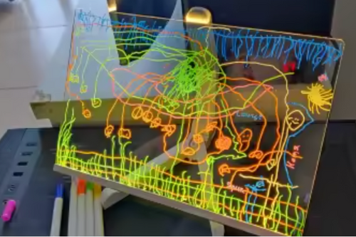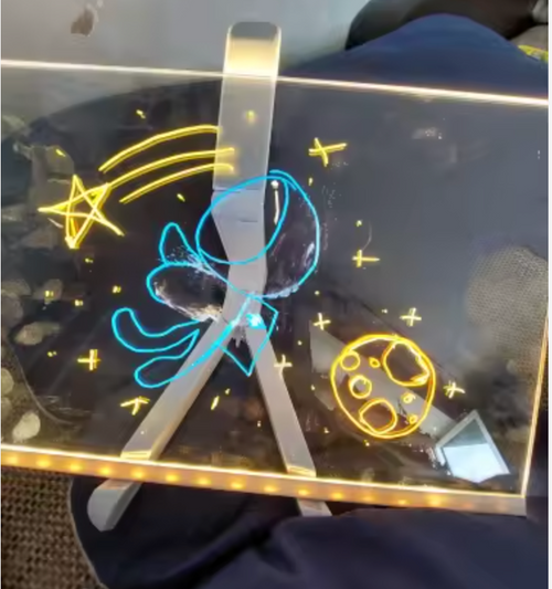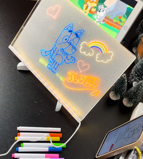 Cada trazo se ilumina, cada dibujo cobra vida. ¡Así se divierten con su pizarra luminosa!