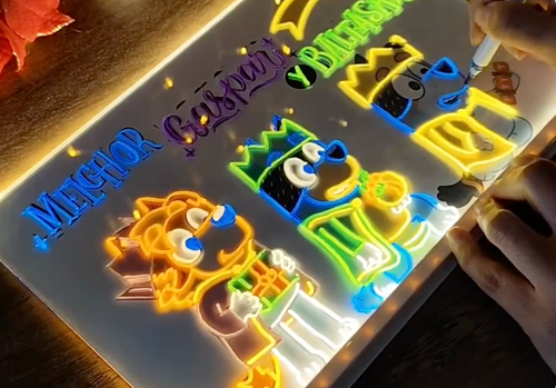 Muy buena compra. Mi hijo es fan de los dibujos y esta pizarra le permite crear lo que quiera. La luz hace que todo se vea mágico.