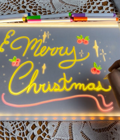 El set incluye una pizarra mágica con luz LED, 7 marcadores fluorescentes y paños de limpieza reutilizables, todo lo necesario para que los peques den rienda suelta a su creatividad.